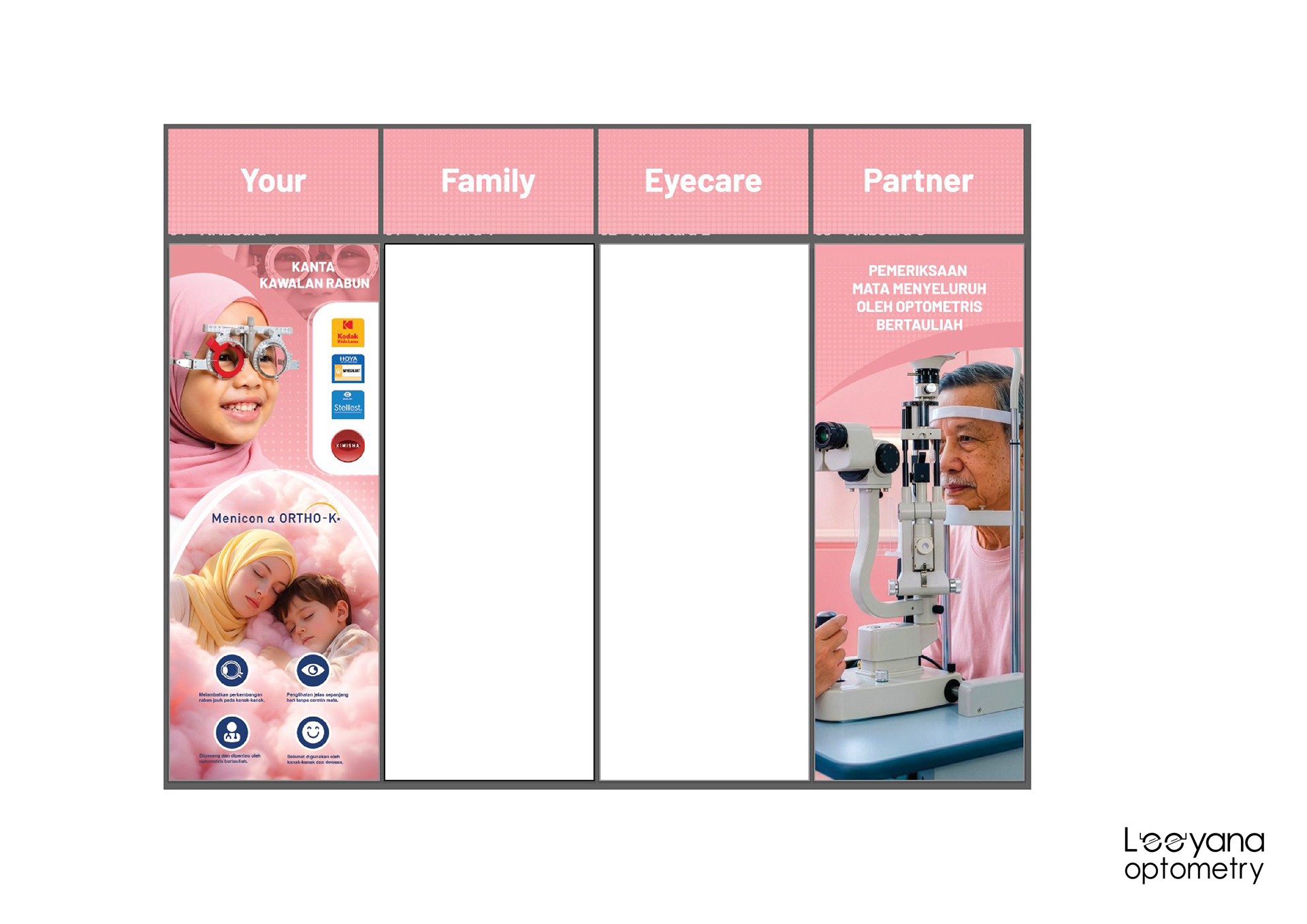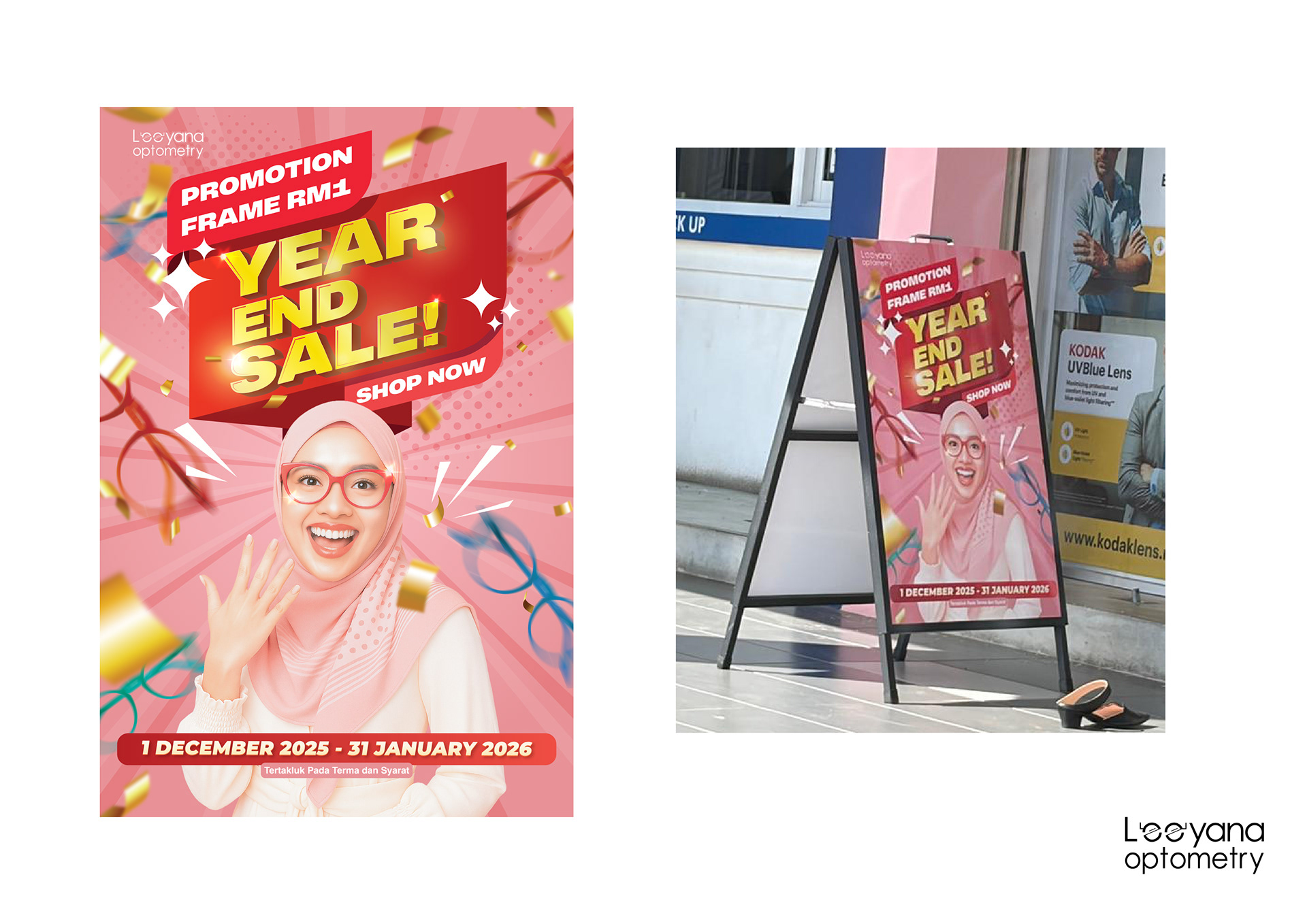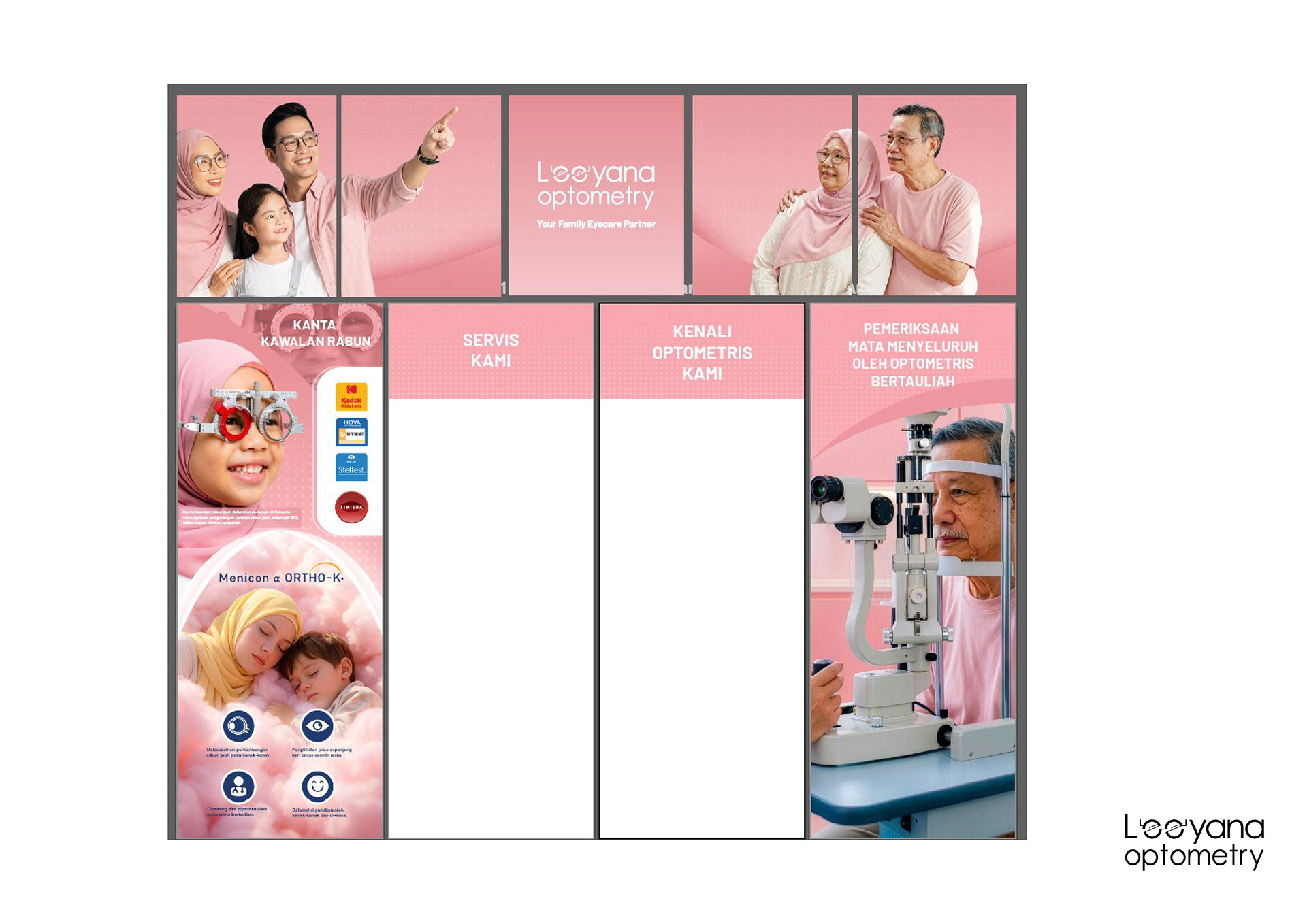 Leeyana Optometry is an eye care specialist outlet that requires improvement in its overall brand presence, including design consistency and promotional approach. In this project, I supported the development of a cohesive brand identity by aligning key visual elements such as the logo, typography, color palette, and overall design strategy. This work represents part of the branding solutions I created for the client.